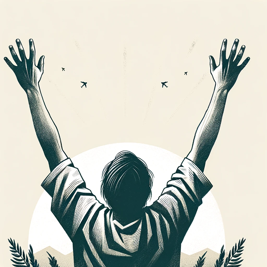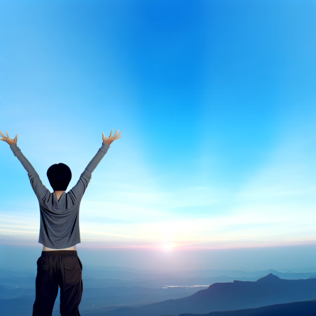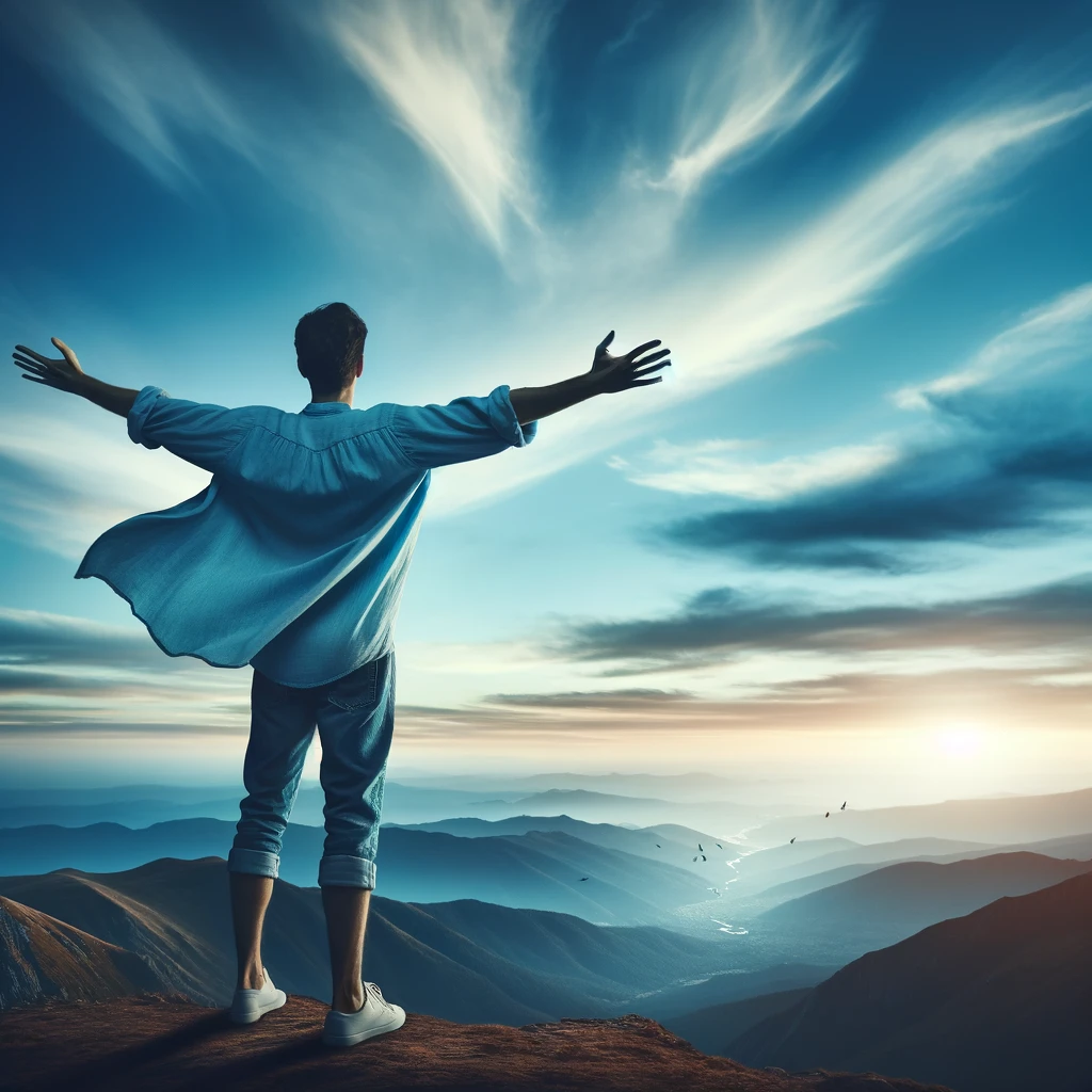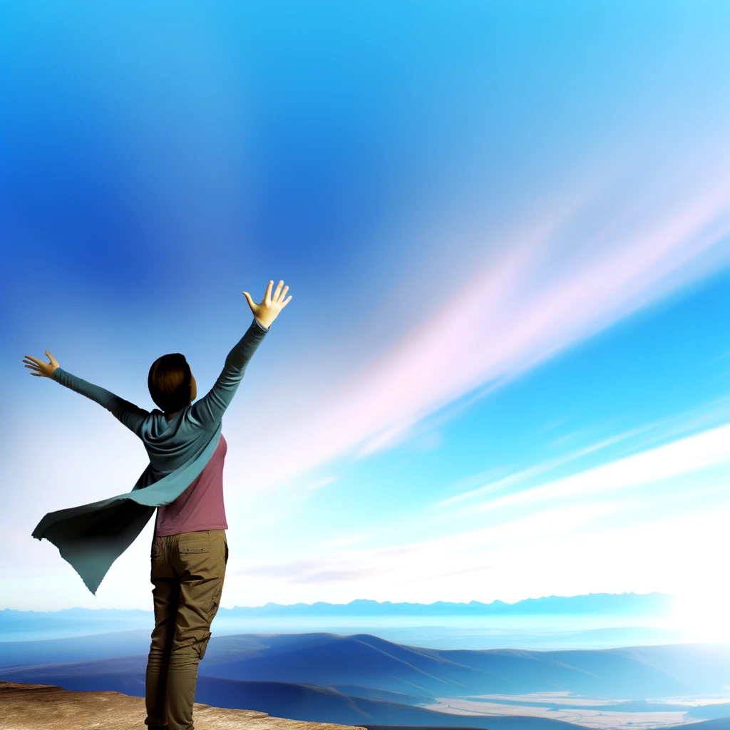 腕を大きく広げて自由を表現するポーズ:Arms spread wide to express freedom