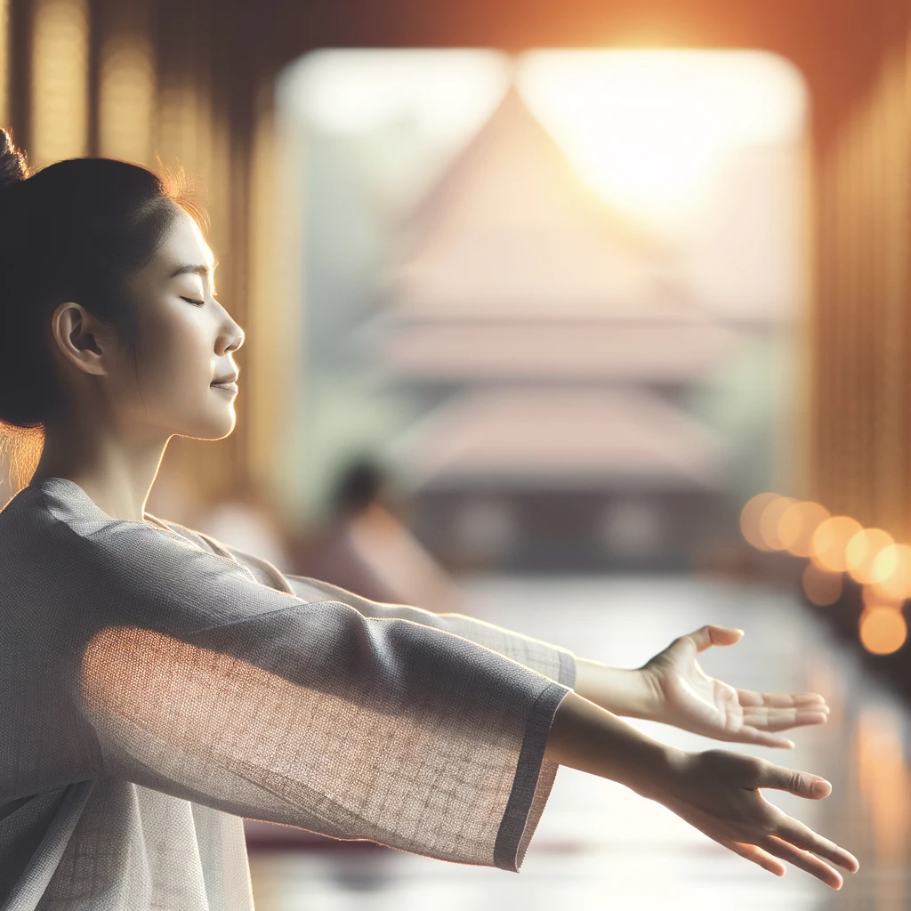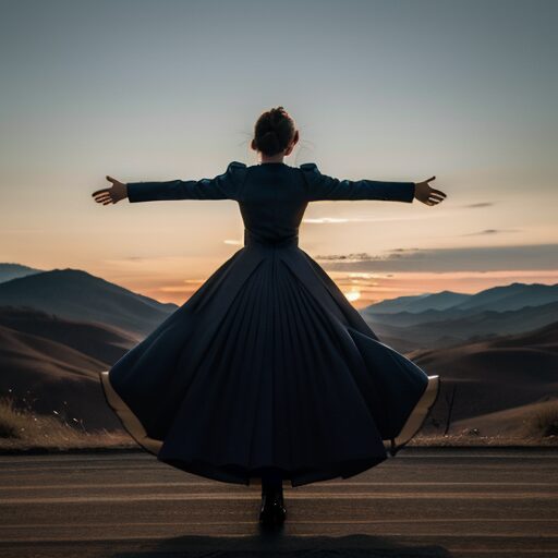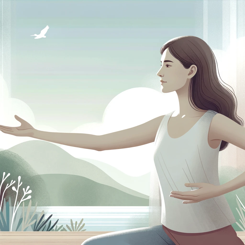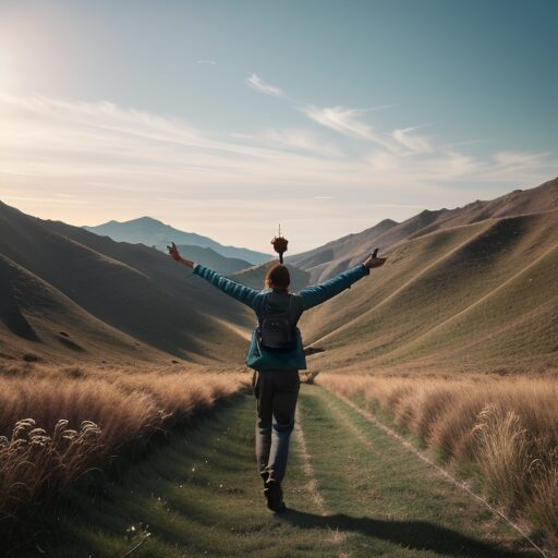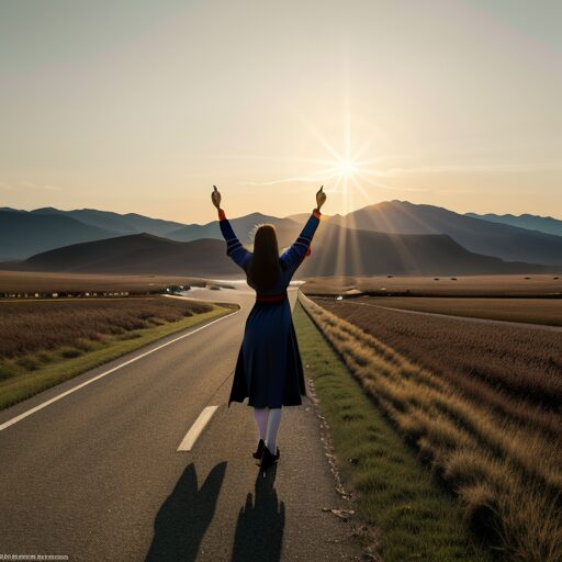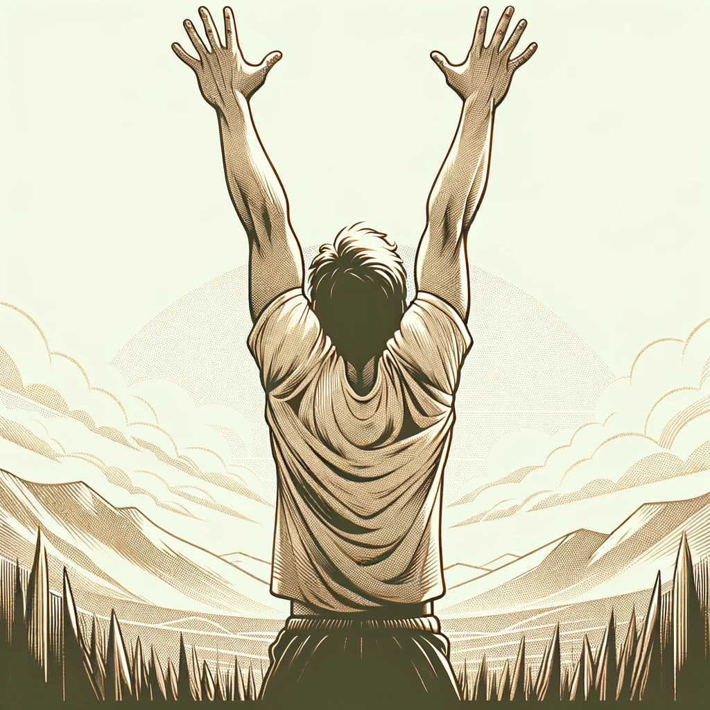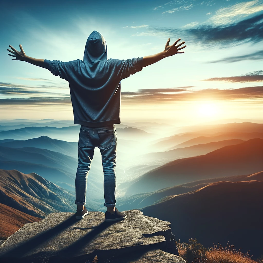 腕を大きく広げて自由を表現するポーズ:Arms spread wide to express freedom