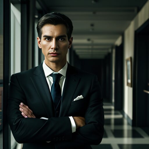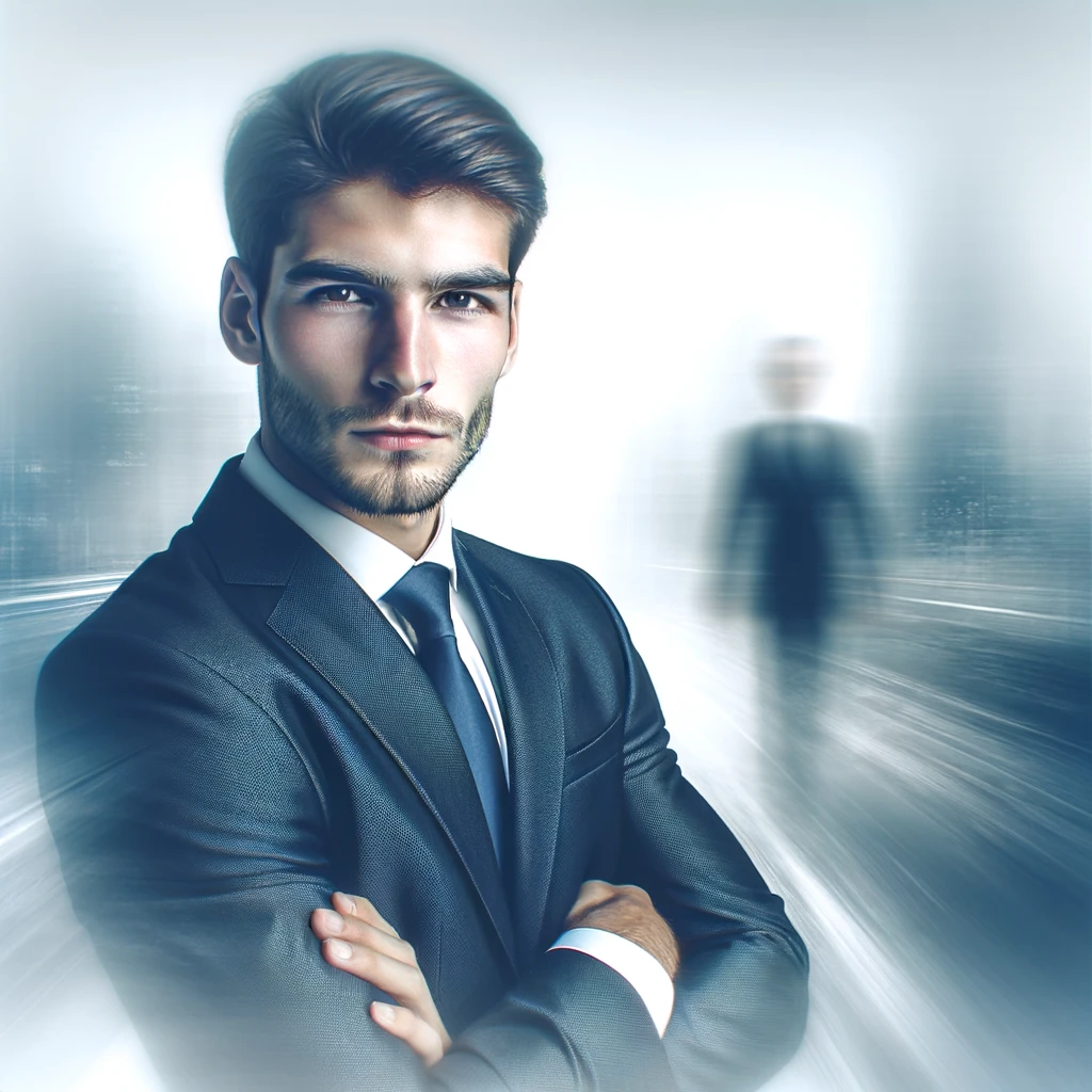 腕を組み、考え込む人のシルエット:Silhouette of a person with arms crossed, deep in thought