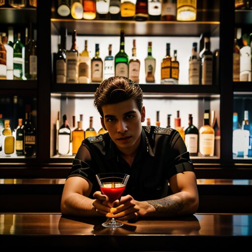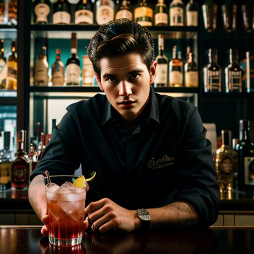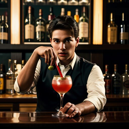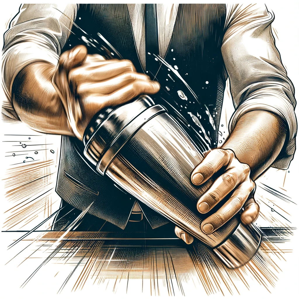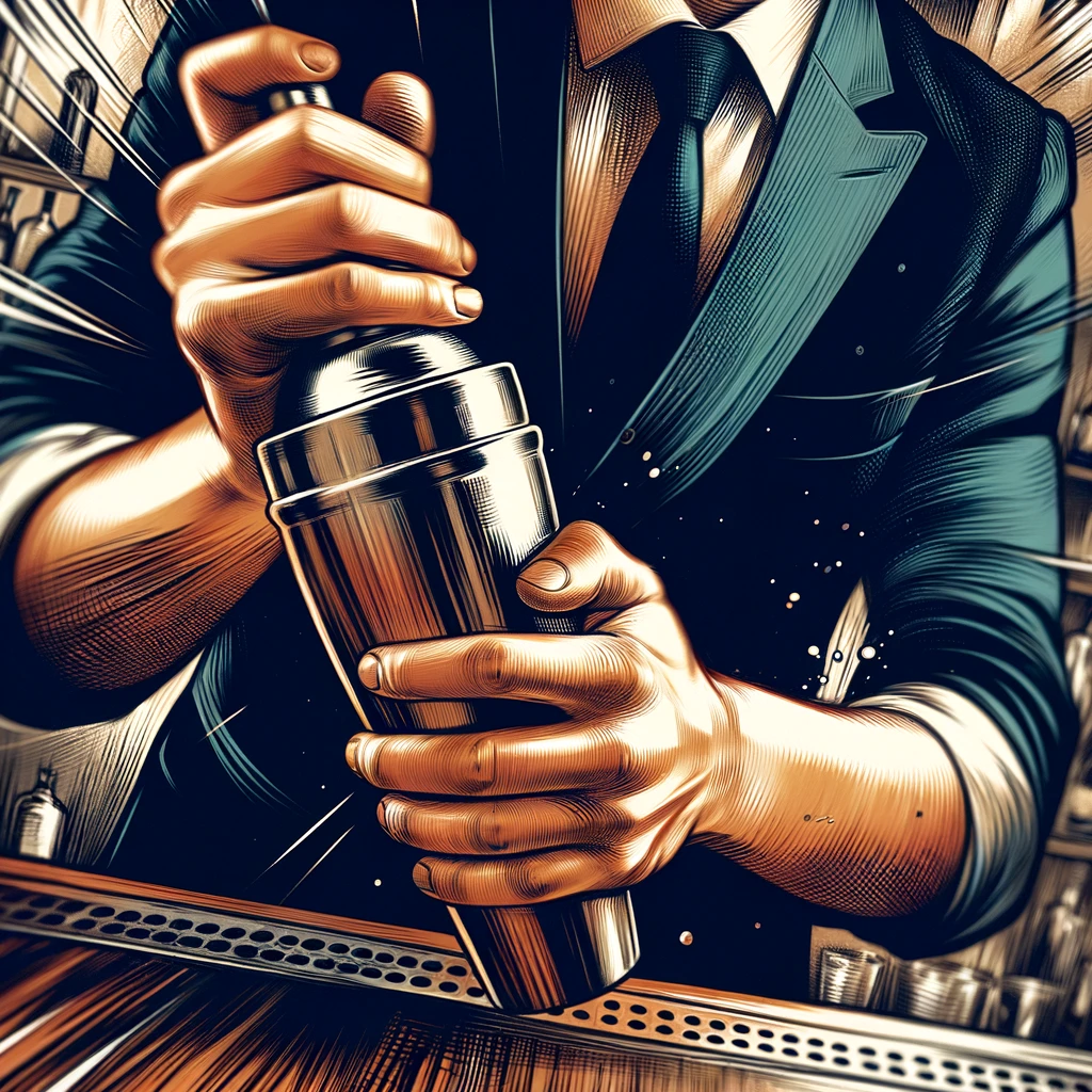 バーテンダーがカクテルをシェイクする腕:Bartender's arm shaking a cocktail