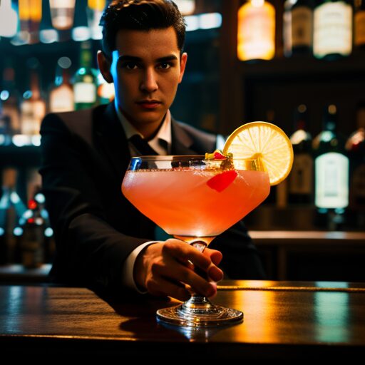 Stable Diffusionではシェイクが終わってカクテルが出来上がった状況を生成することがわかりました。