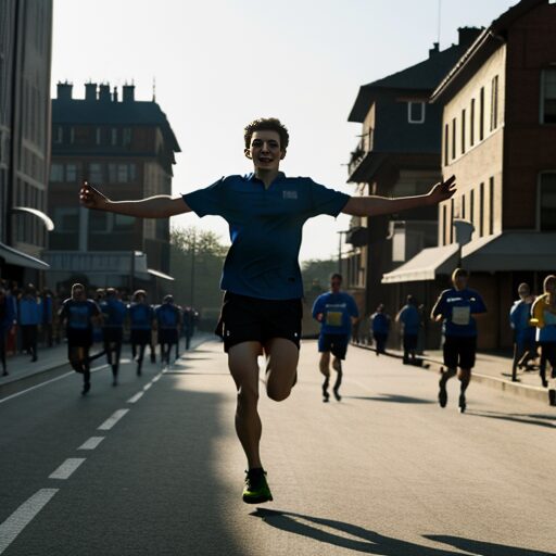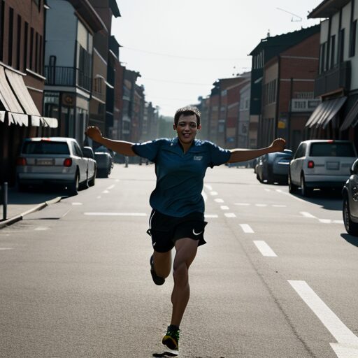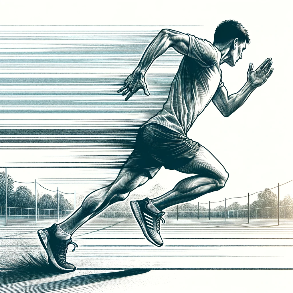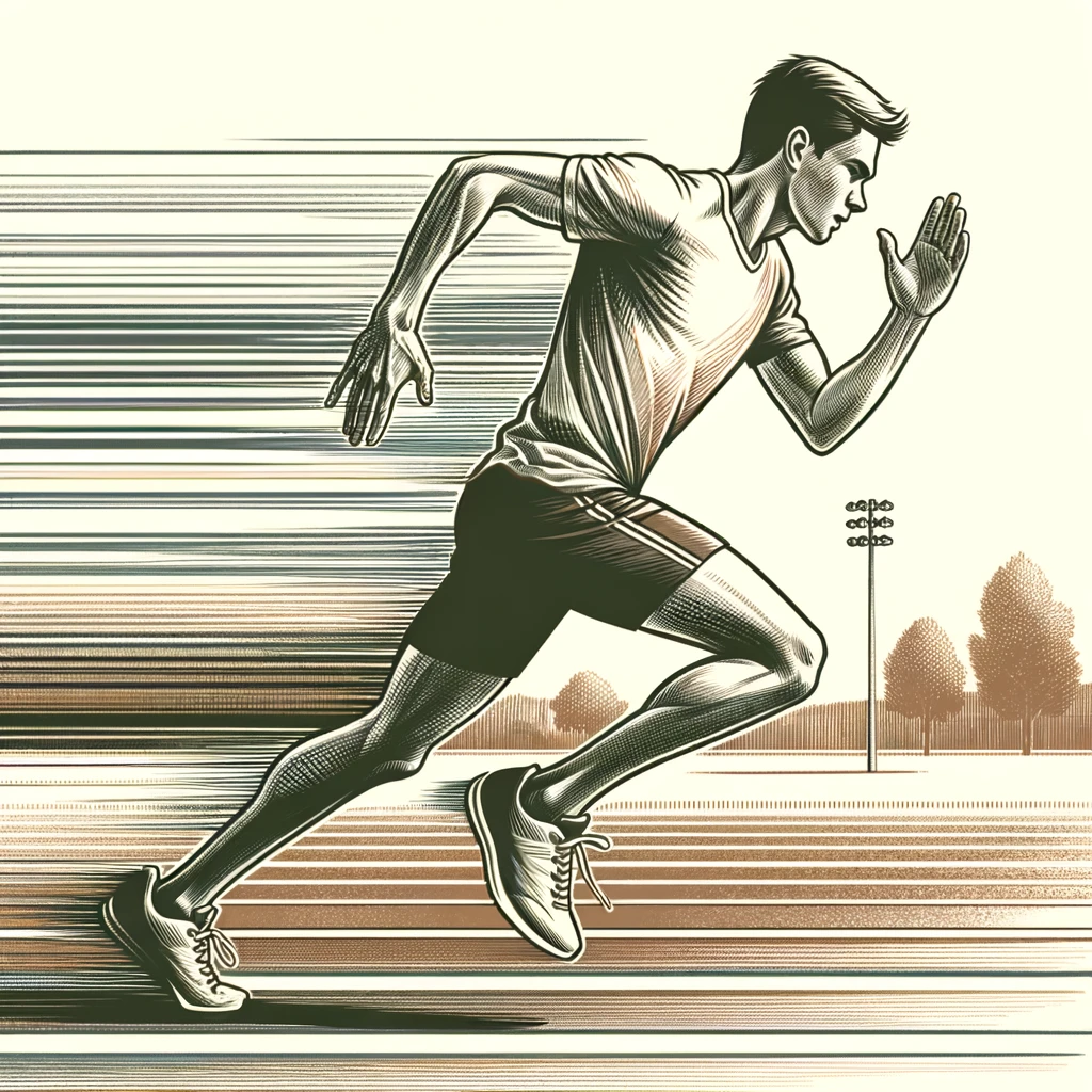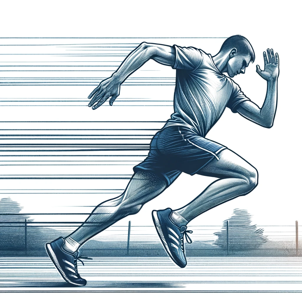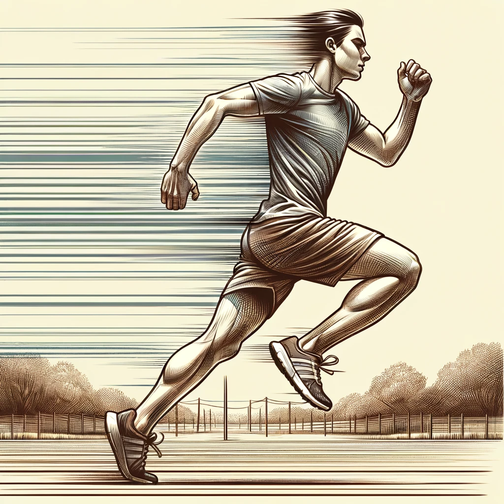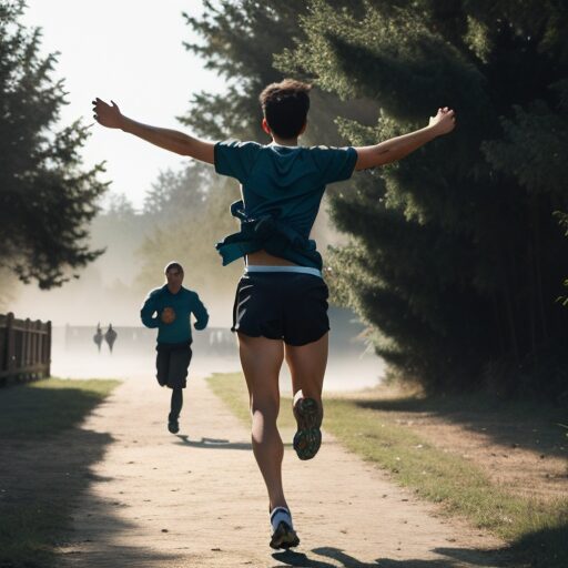 腕を振りながらランニングする人:Person running with arms swinging