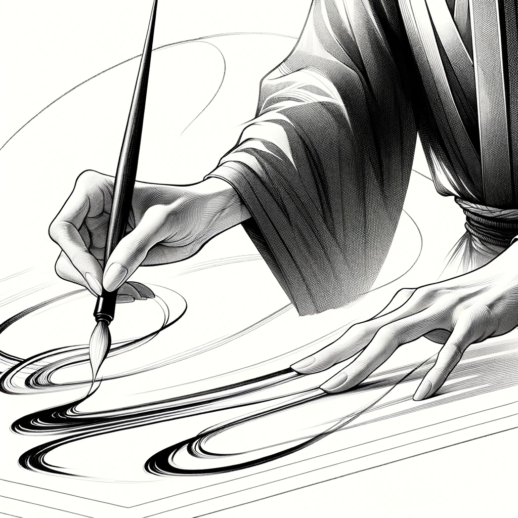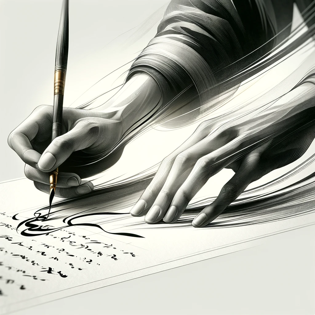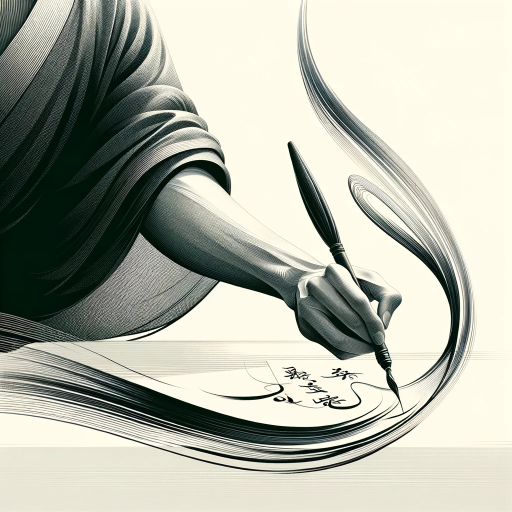 書道をするときの腕の流れるような動き:Fluid arm movement while practicing calligraphy