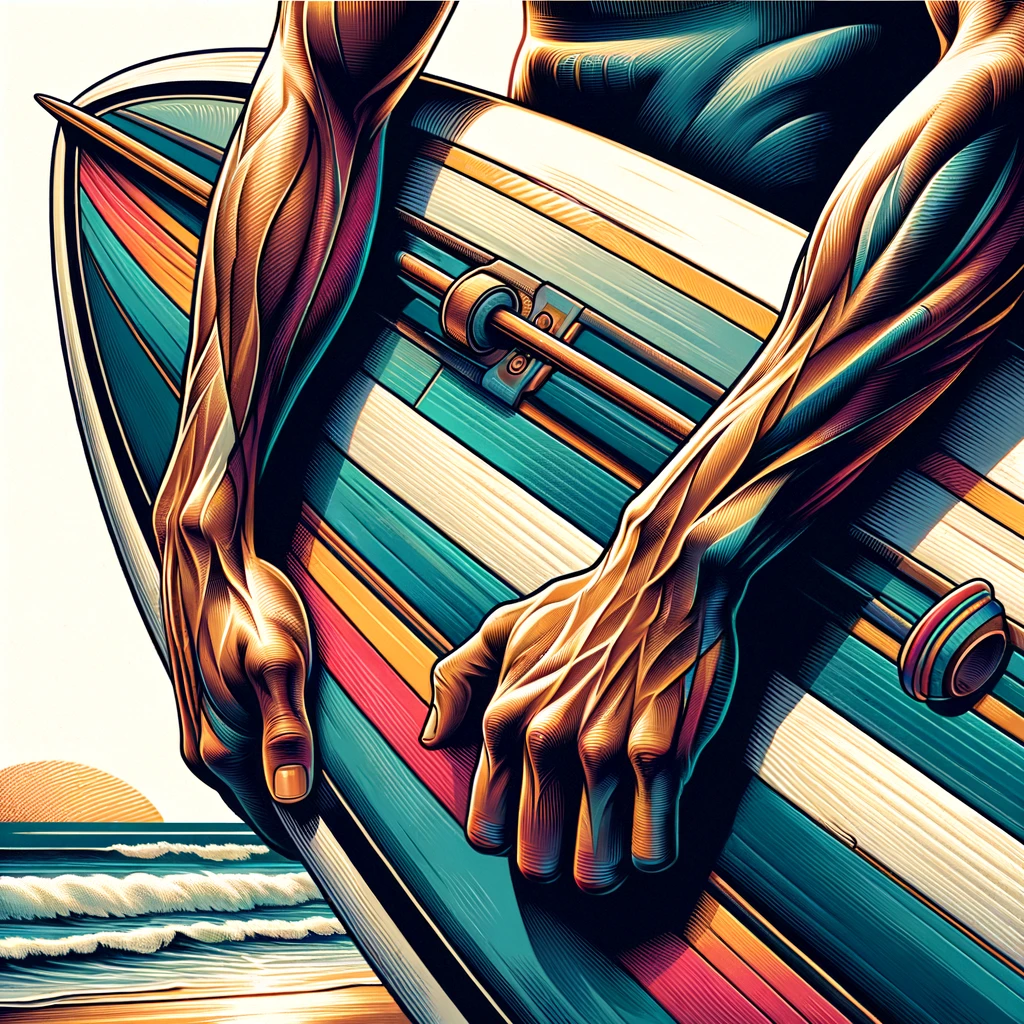 サーフボードを持つ腕:Arms holding a surfboard