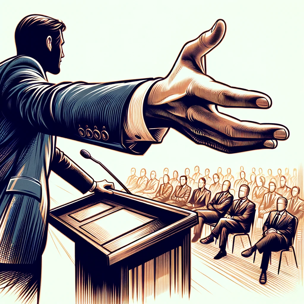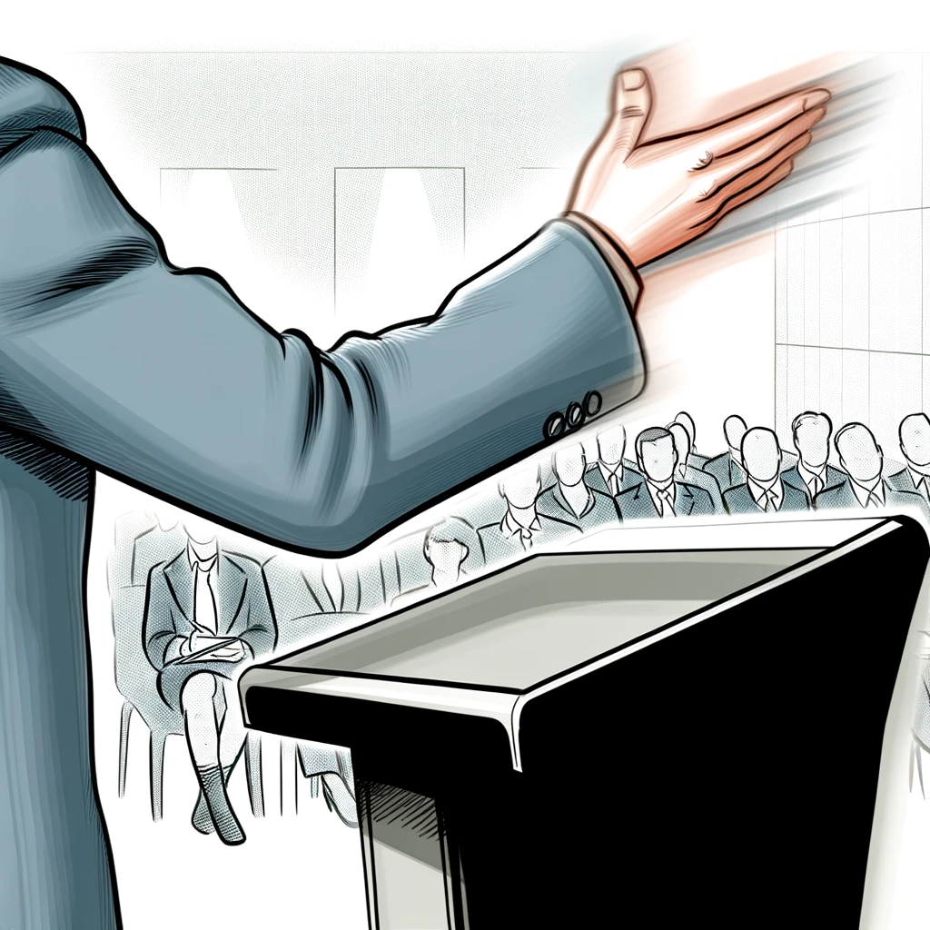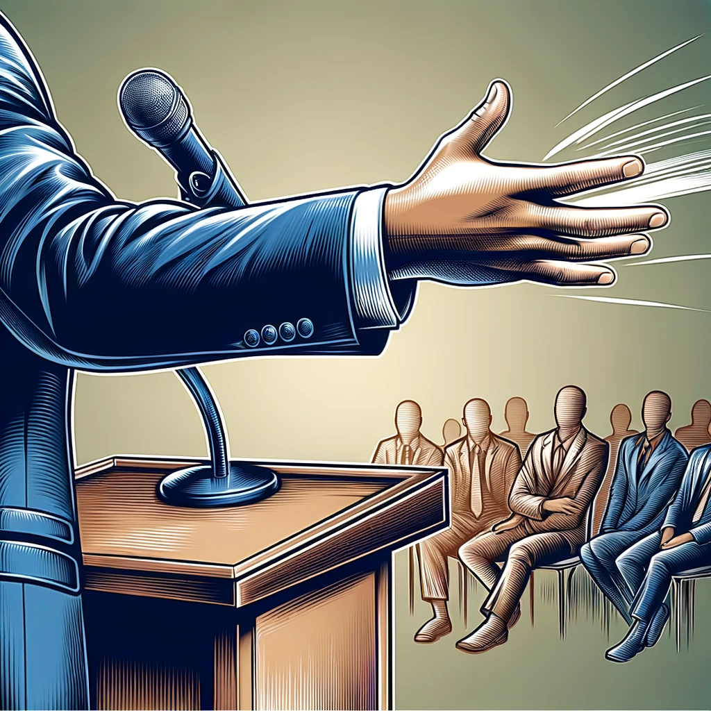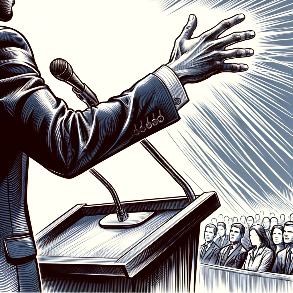 演説中に強調するために腕を振る:Arm waving for emphasis during a speech