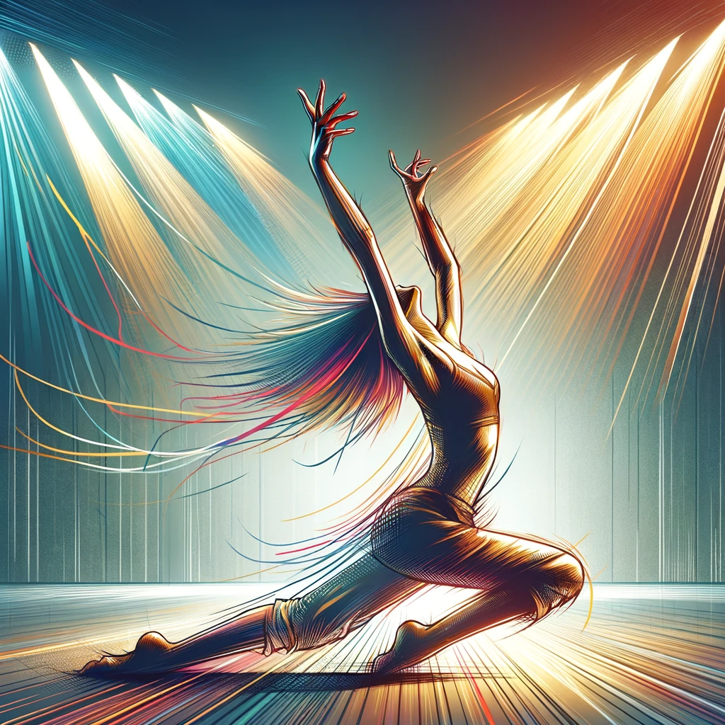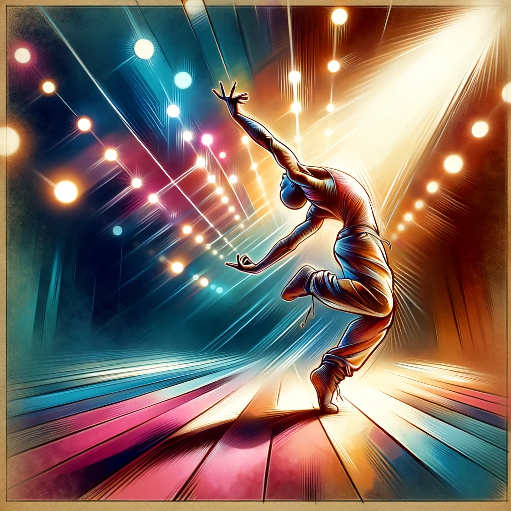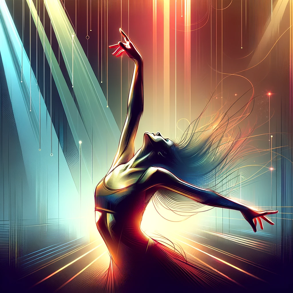 ダンス中に腕を天井に向けて高く挙げるポーズ:Pose with arms raised high towards the ceiling while dancing