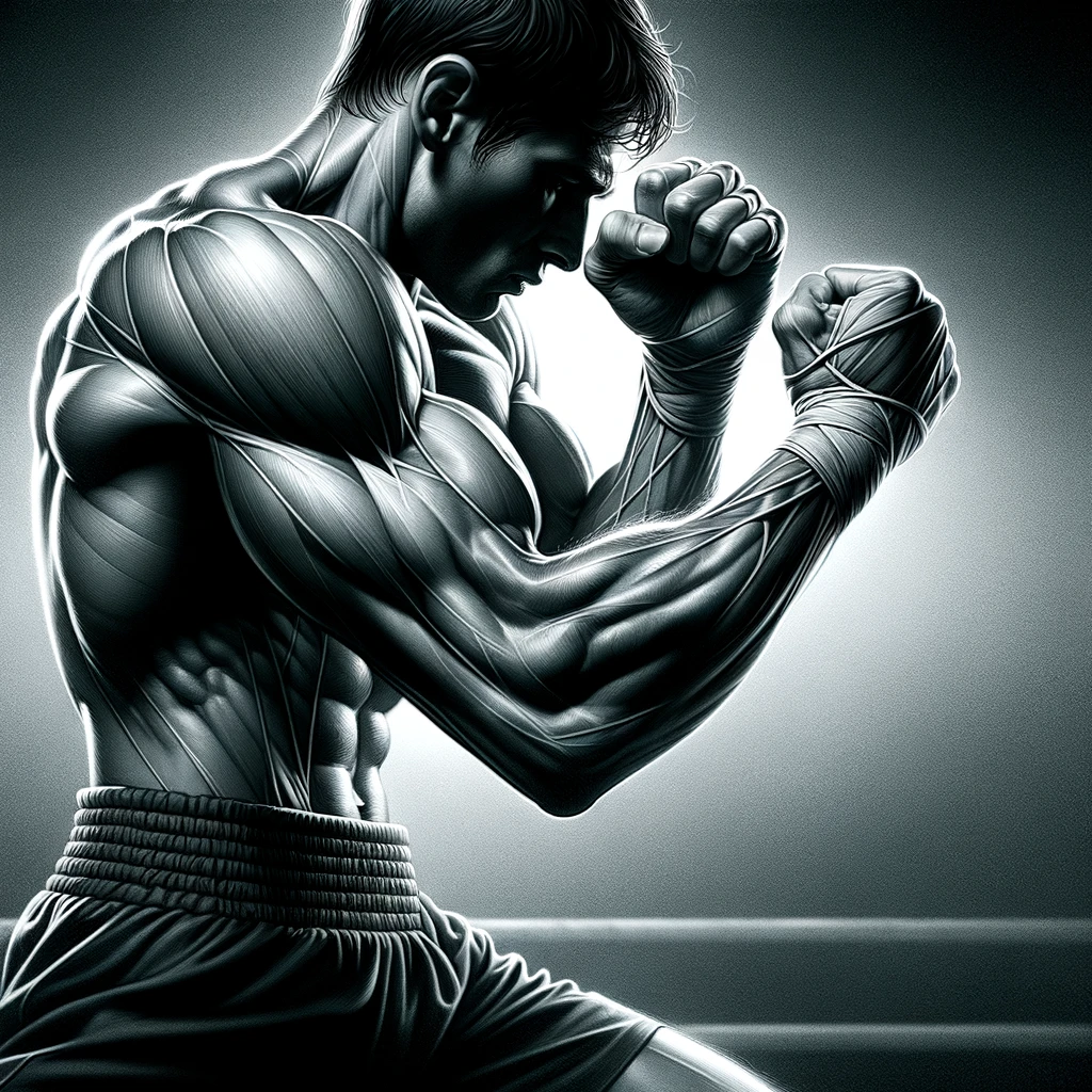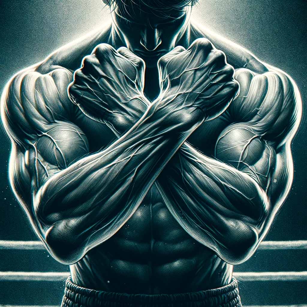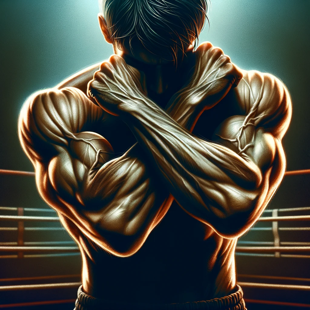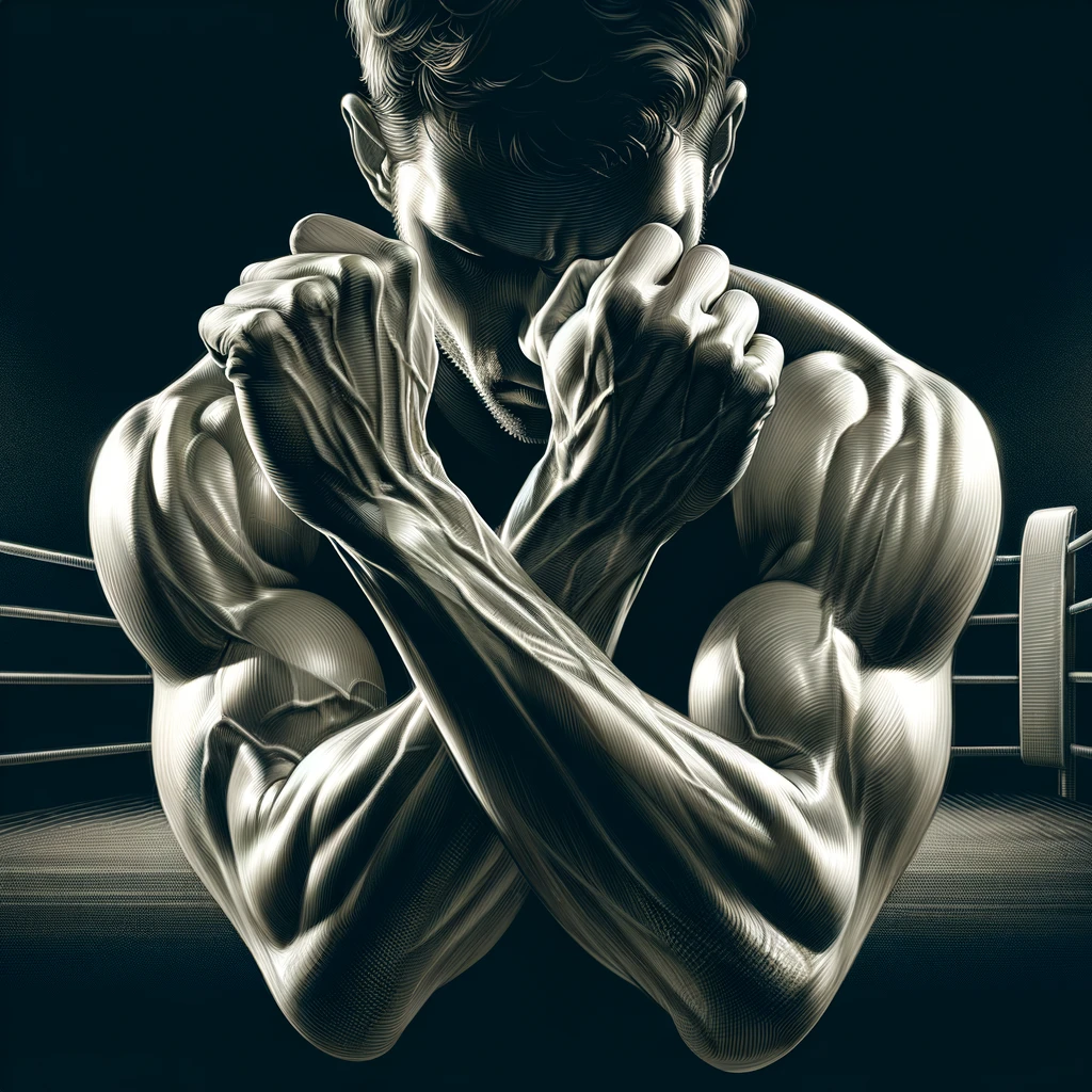 ボクシングのディフェンスポーズをとる腕:Arms in a boxing defensive pose