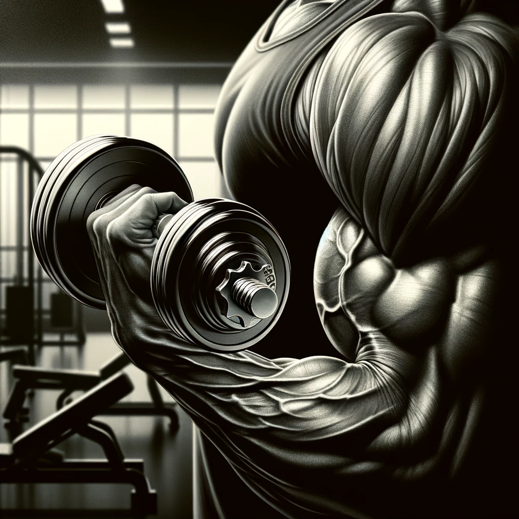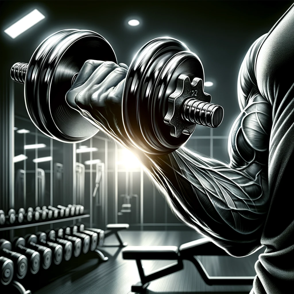 ジムでダンベルを持ち上げる腕:Arm lifting dumbbells at the gym