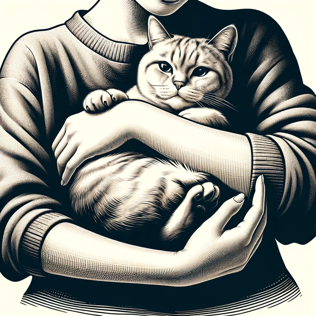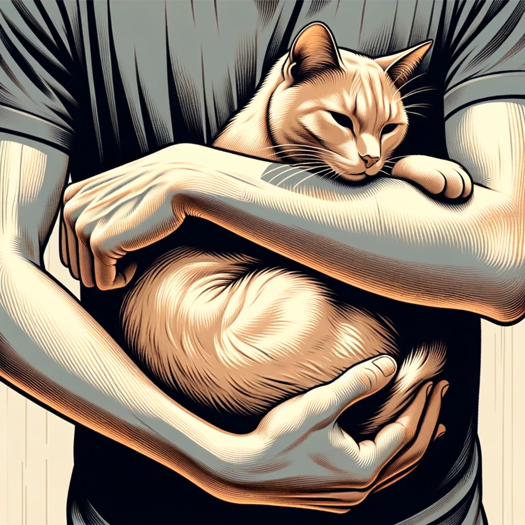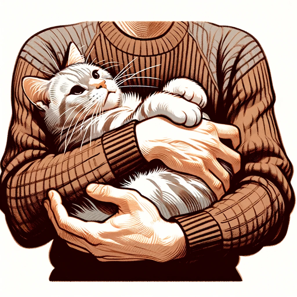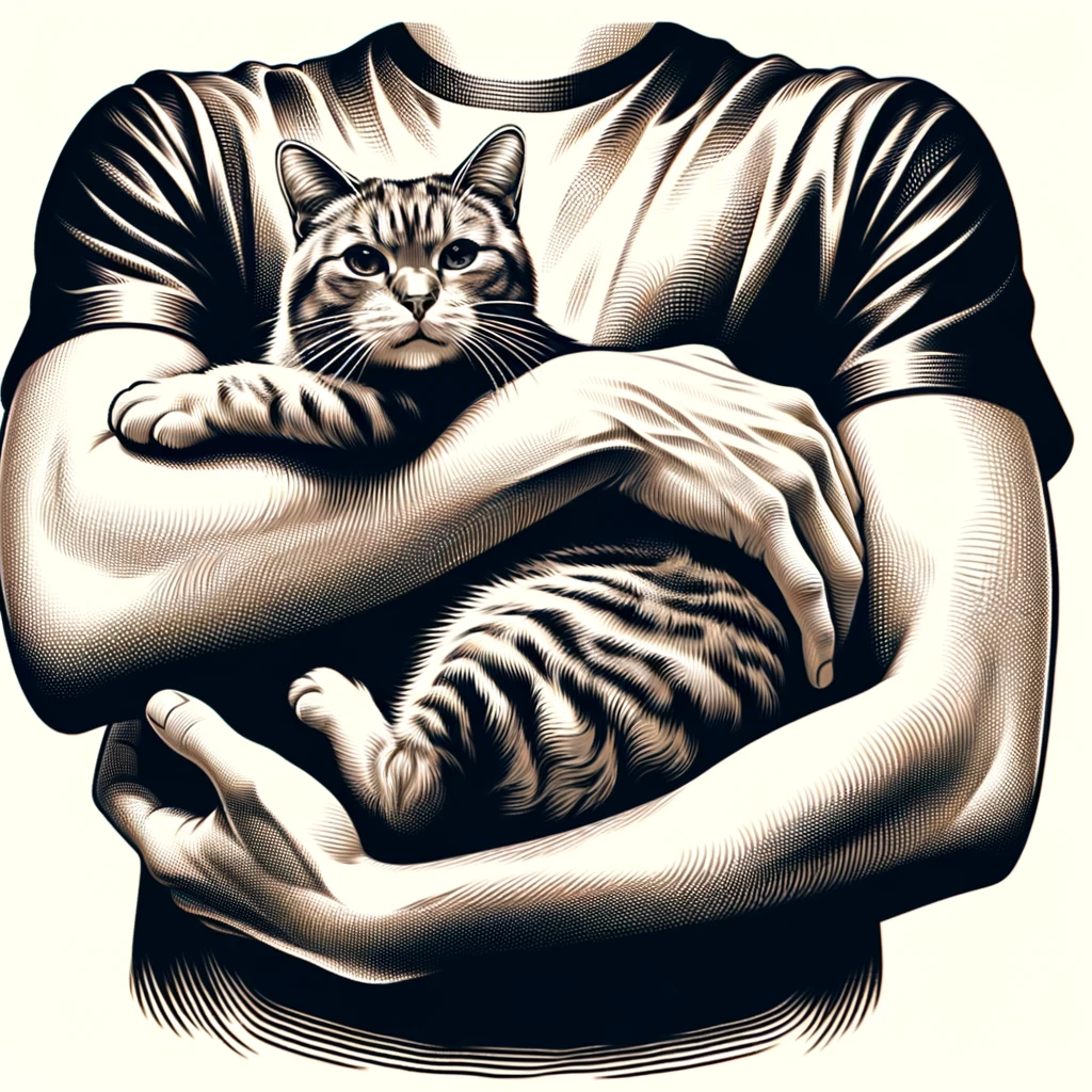 猫を抱く腕:Arms holding a cat