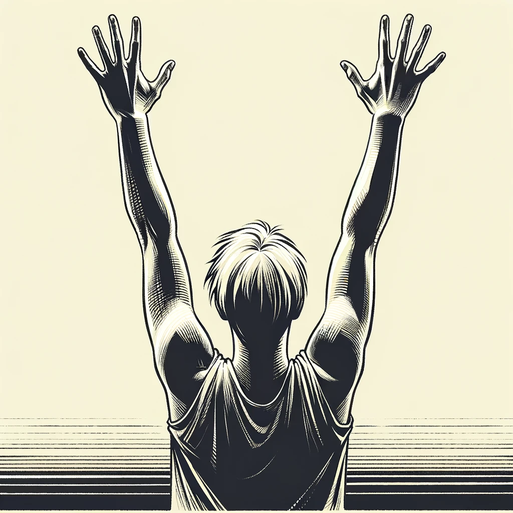 腕を上に上げて伸びをする:Arms raised up for a stretch