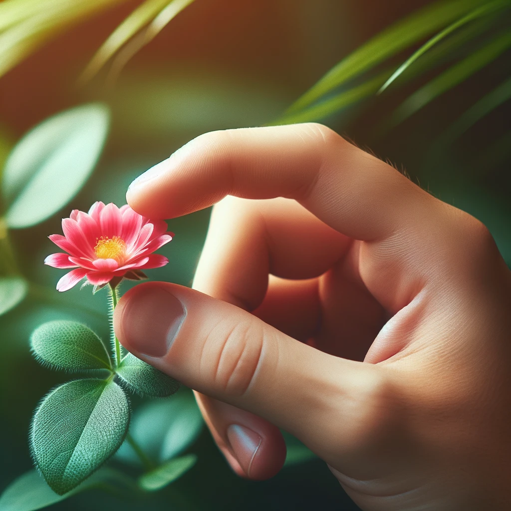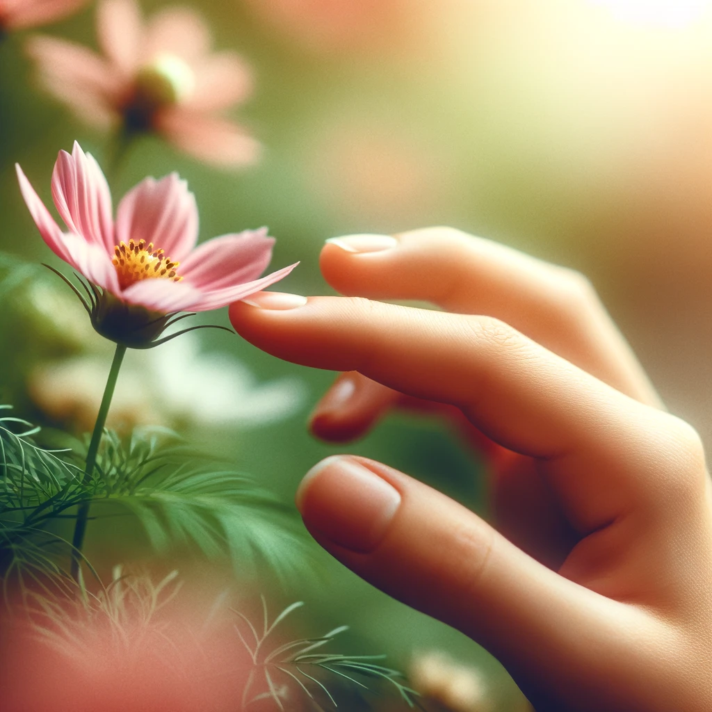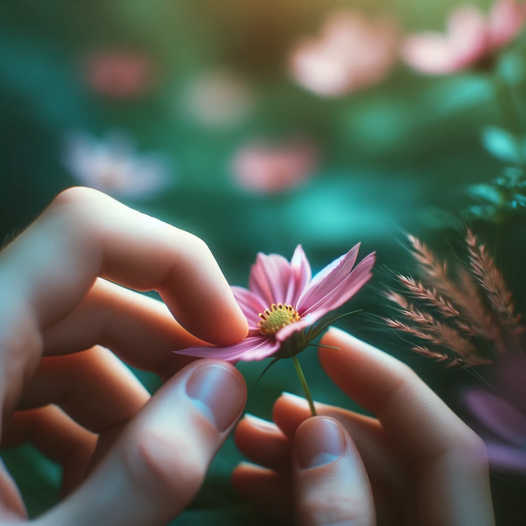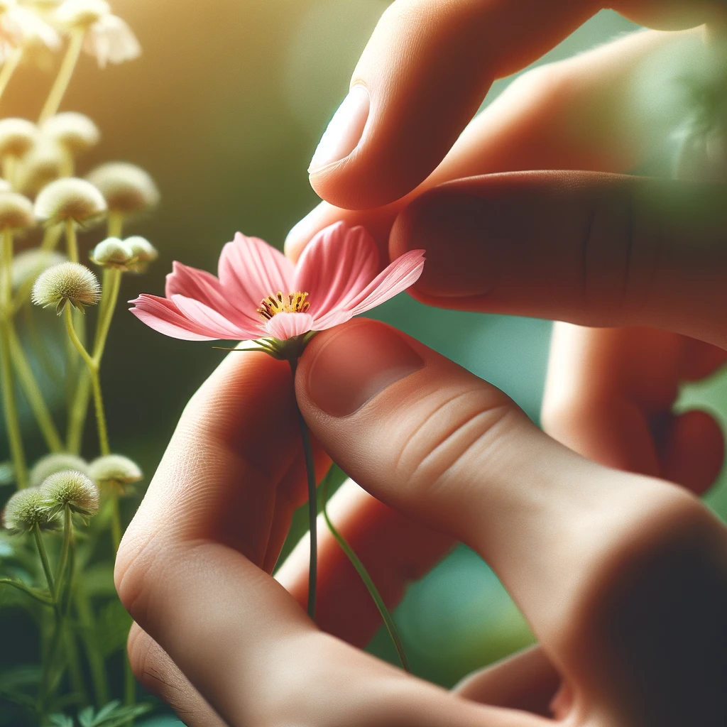 - delicate fingers picking a wildflower(野花をそっと摘む繊細な指先)