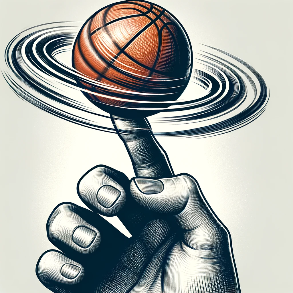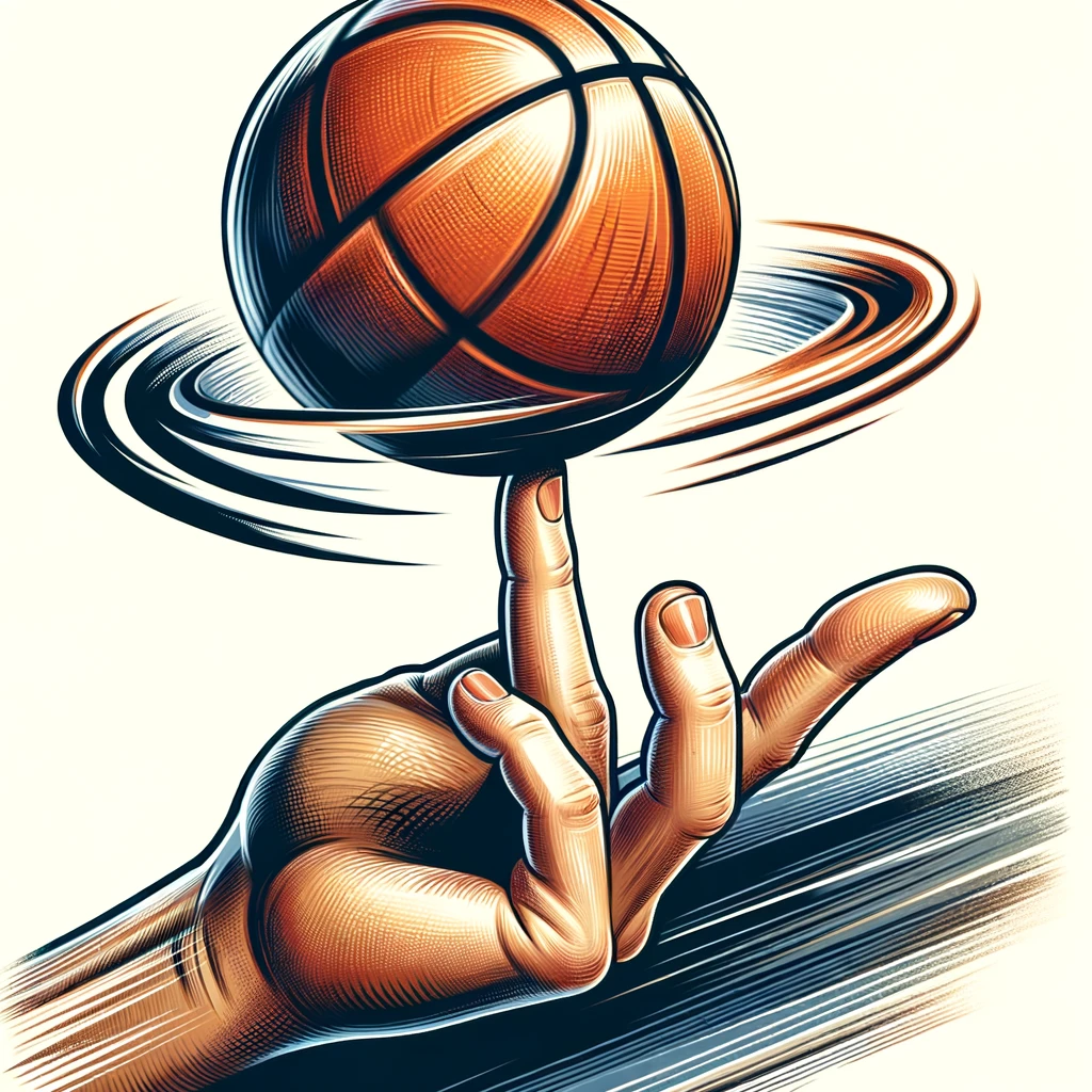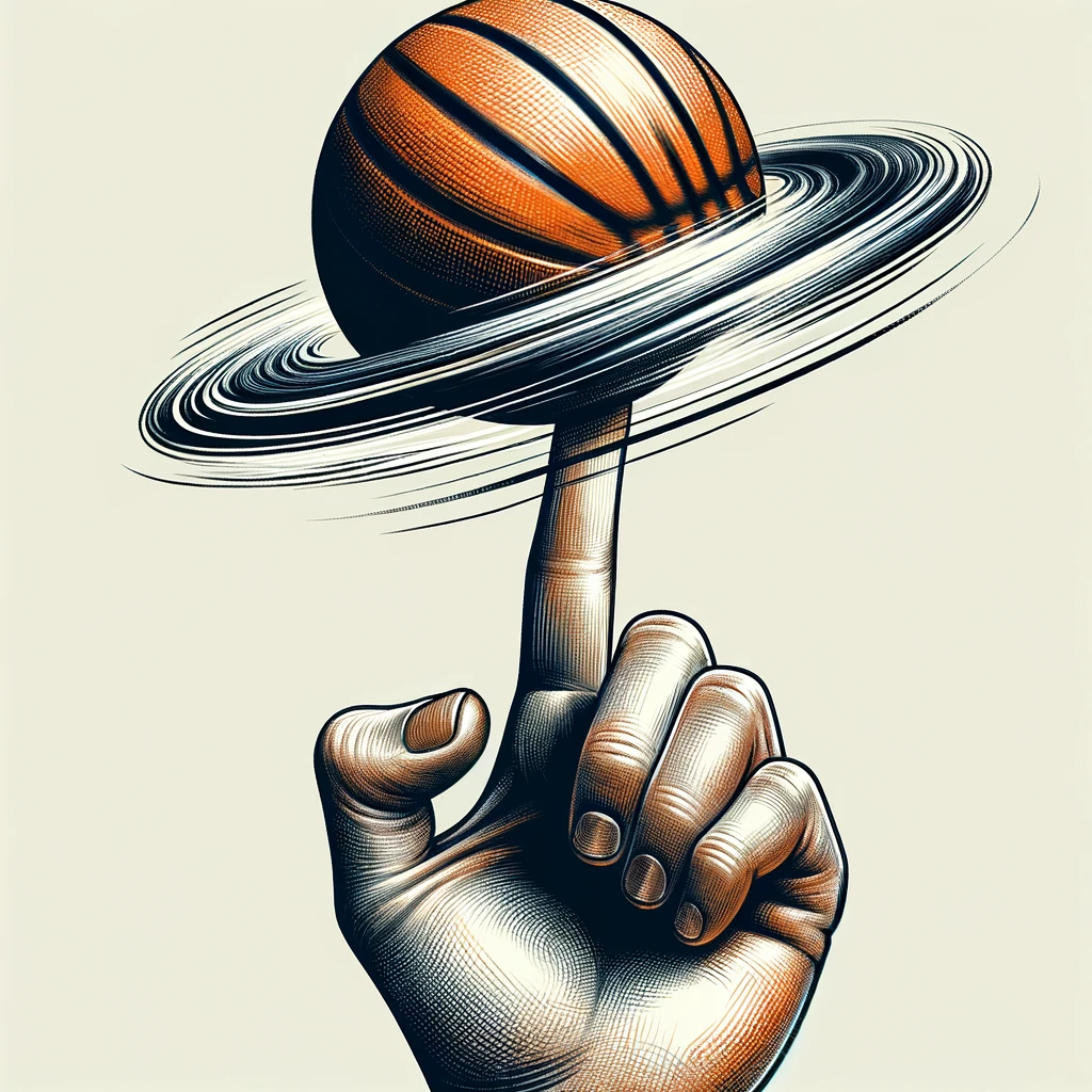 - athlete showing off basketball trick move with finger(トリックプレイを披露するアスリート)