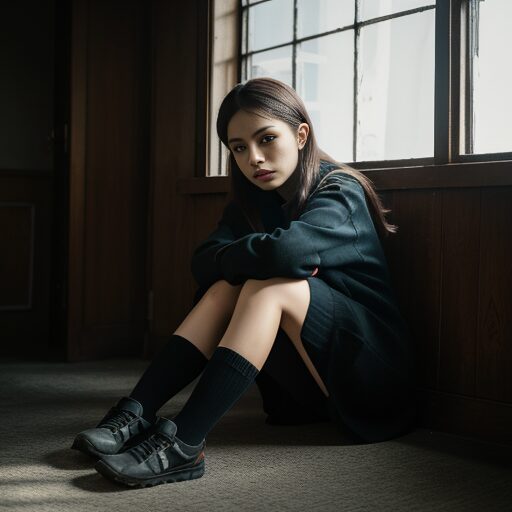 【孤独と内面の表現】膝を抱えて座るポーズで描くAIプロンプト集|不安・寂しさ・沈黙のビジュアル演出