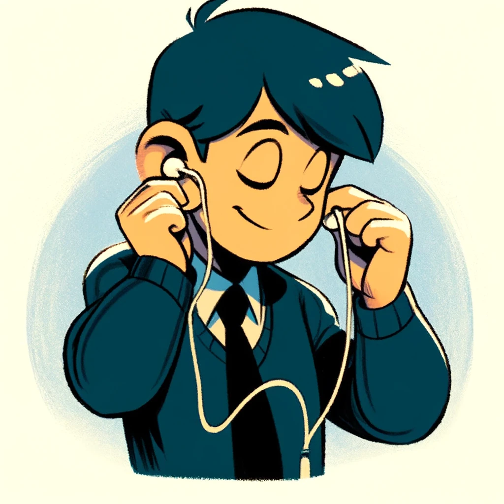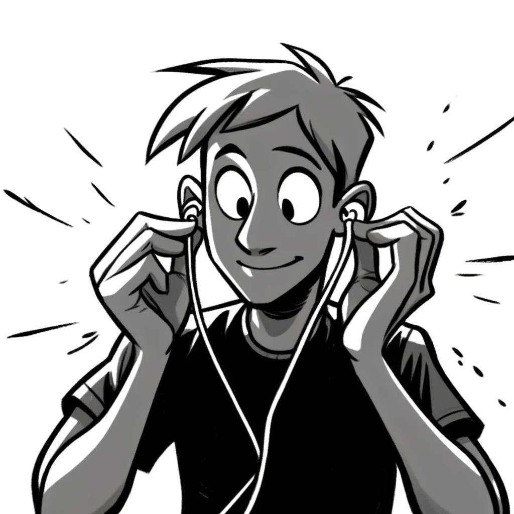 「両手で耳にイヤホンを差し込むイラスト」を描くためにおすすめのプロンプト例