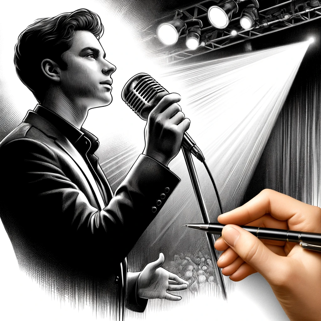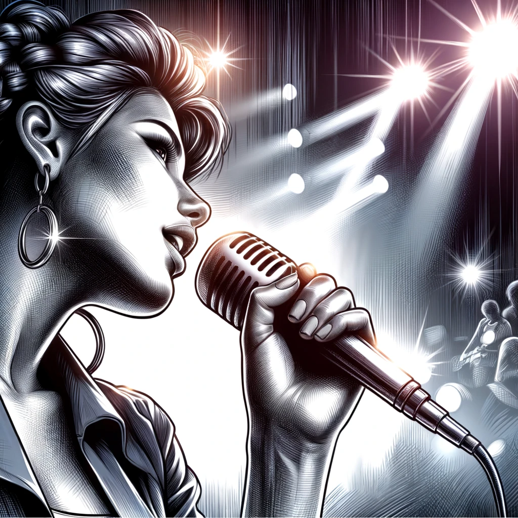 「片手でマイクを持つ歌手のイラスト」を描くためにおすすめのプロンプト例